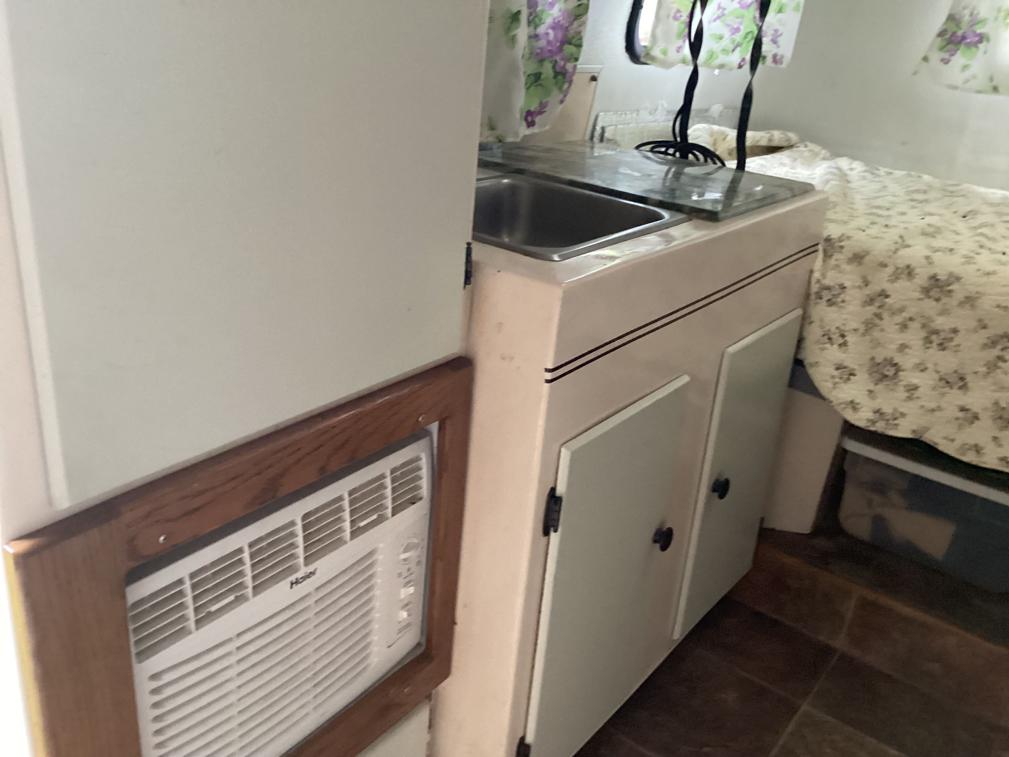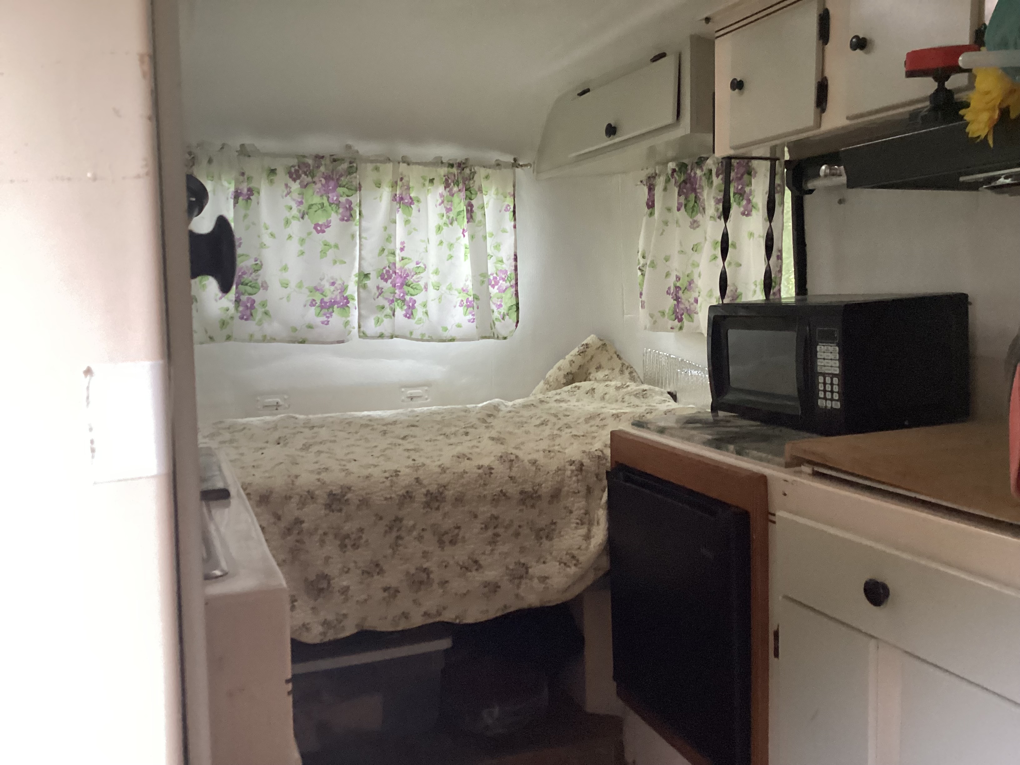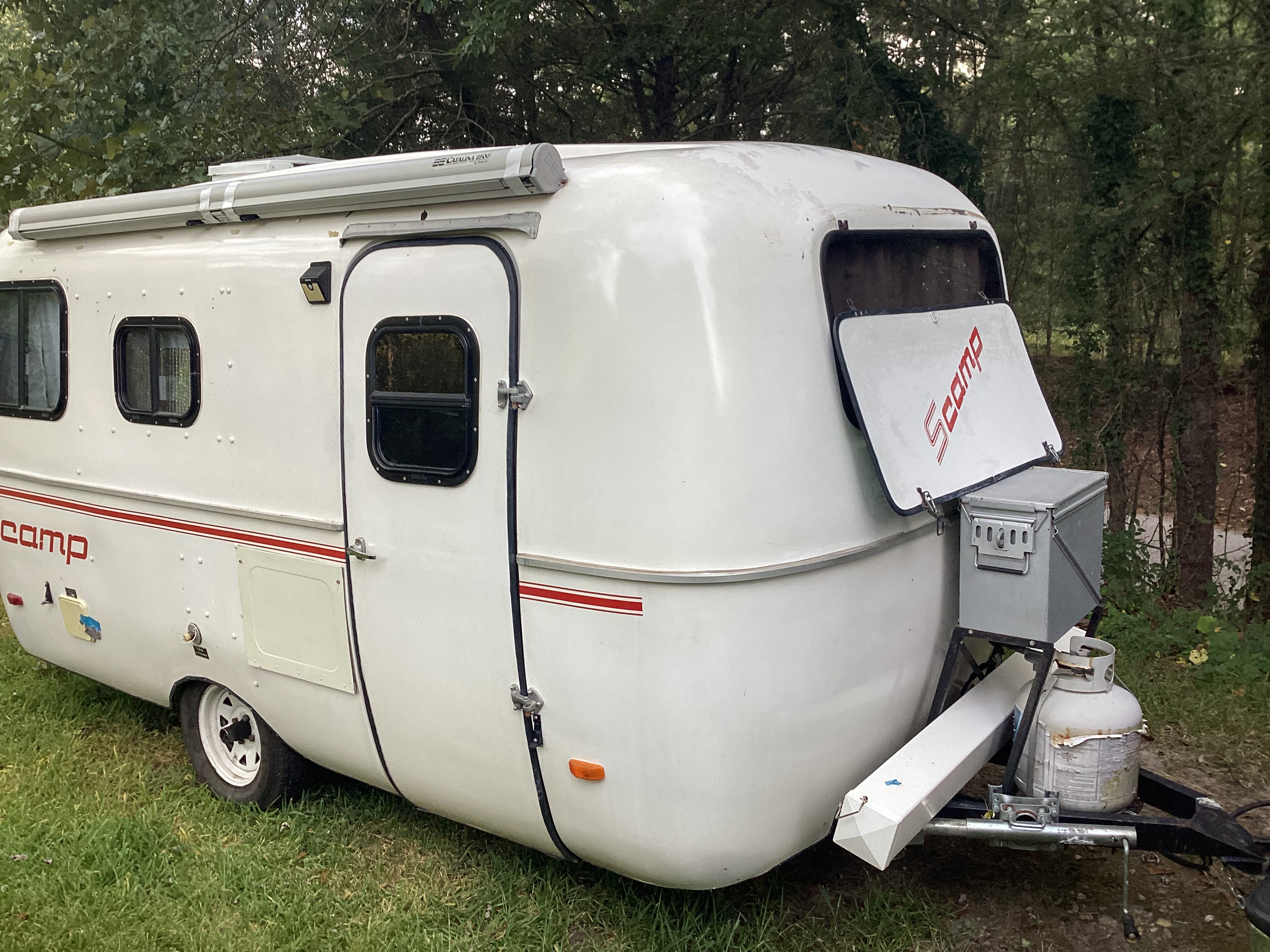 Scamp in good condition ready to continue its journey. Bench in front can convert into twin beds. Air conditioner, stove, and wet bath. Rear table area being used as nice soft bed, but can be redone into table area if desired. 13 inch tires. Ready to hit the road condition.