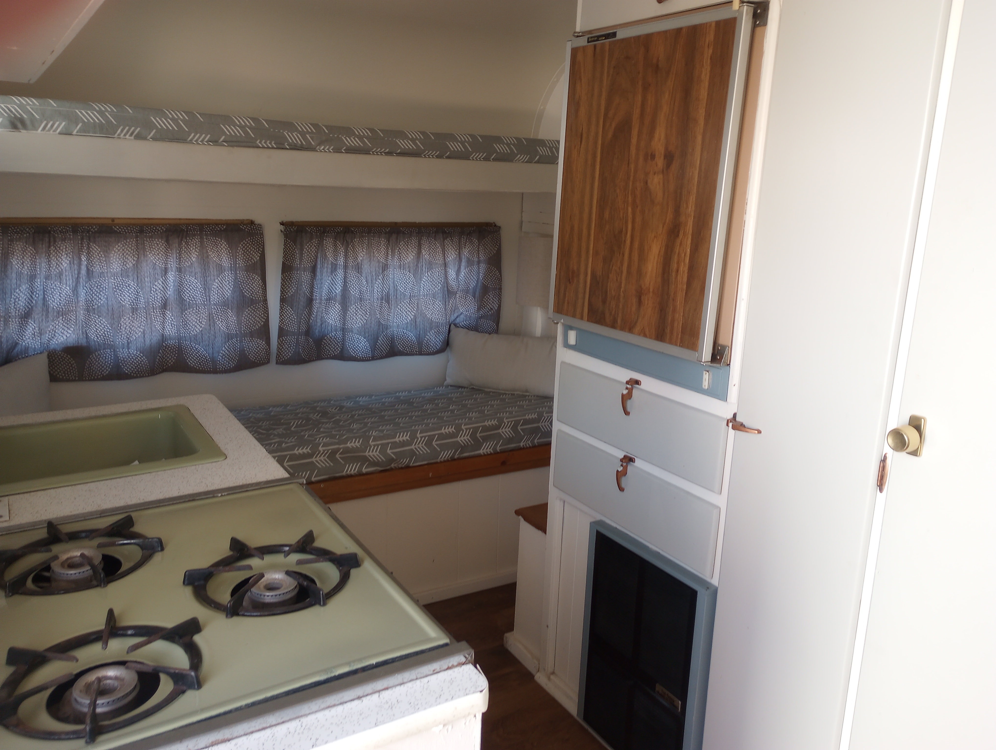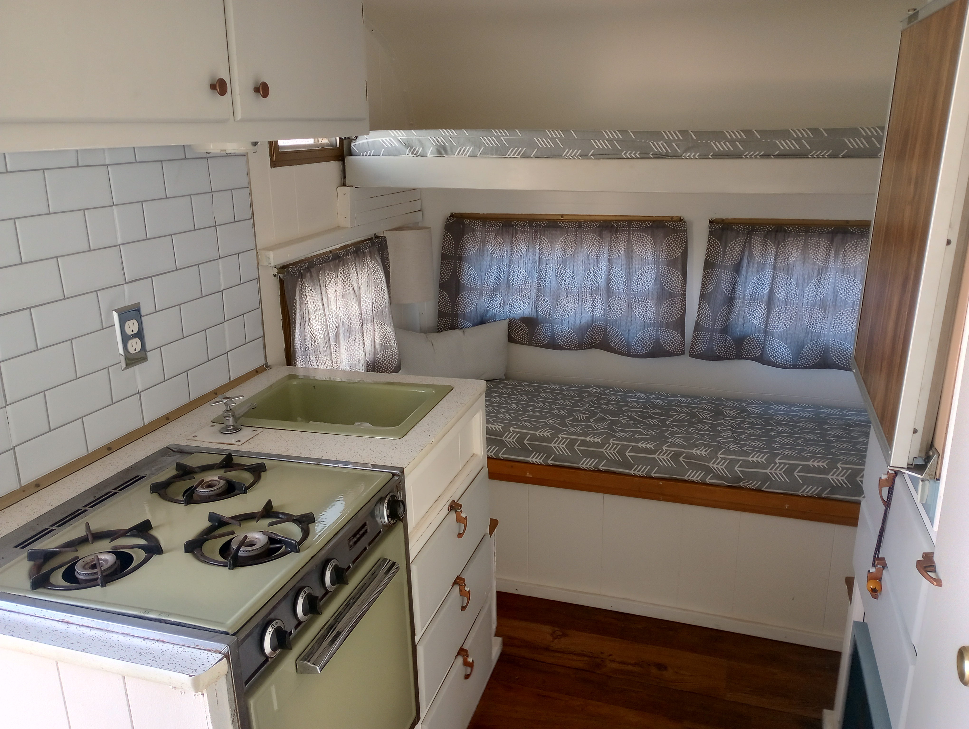 -no water tank? we just bring water jugs-. Stove works. We"ve never used the oven, furnace, fridge, or