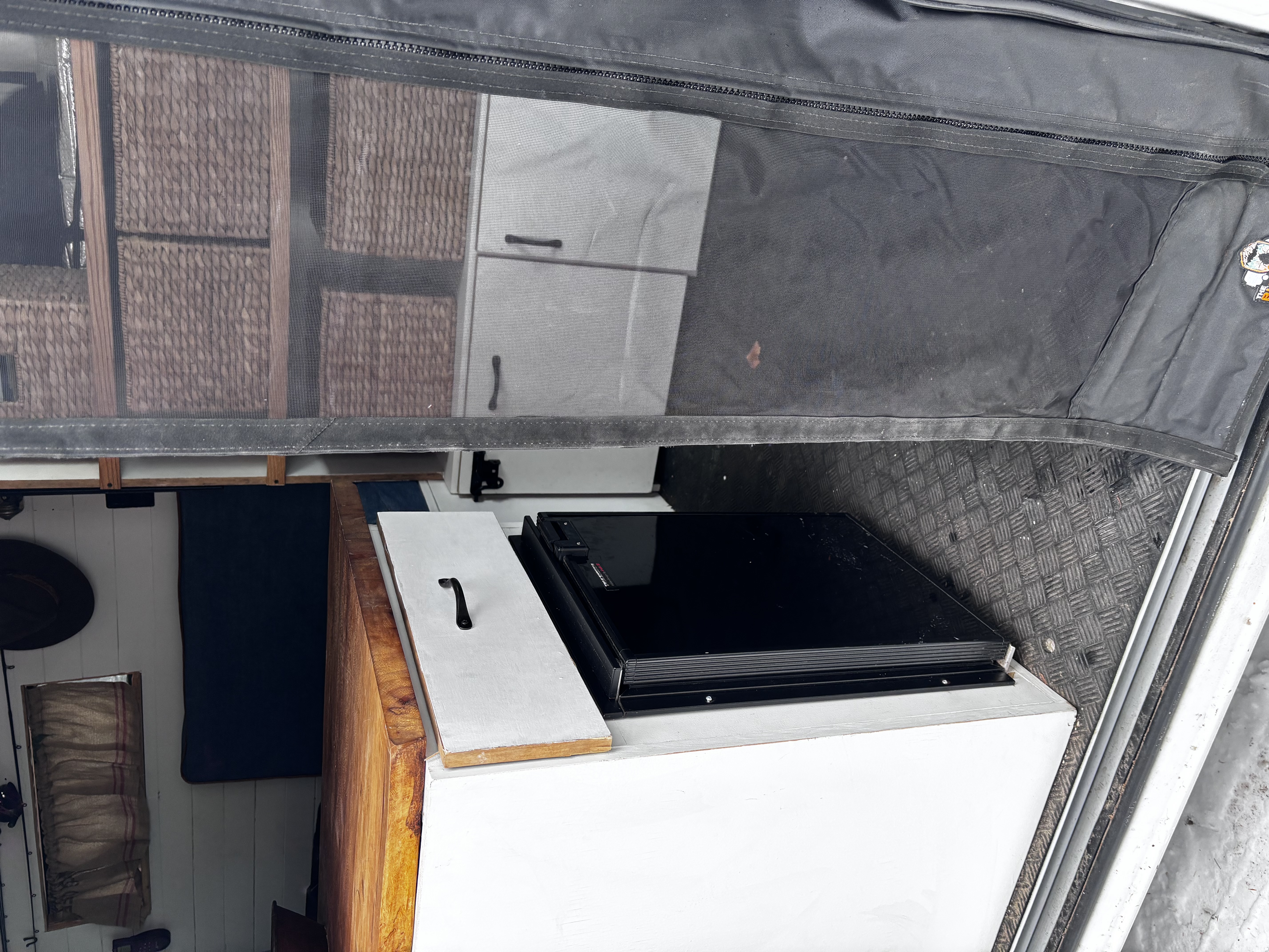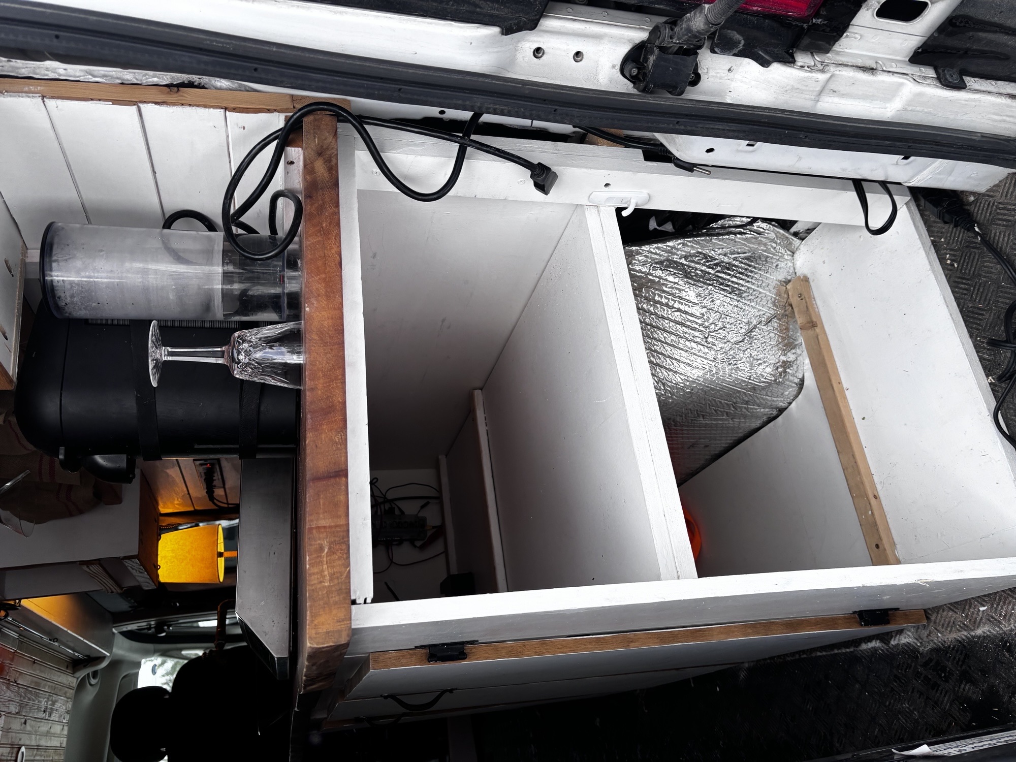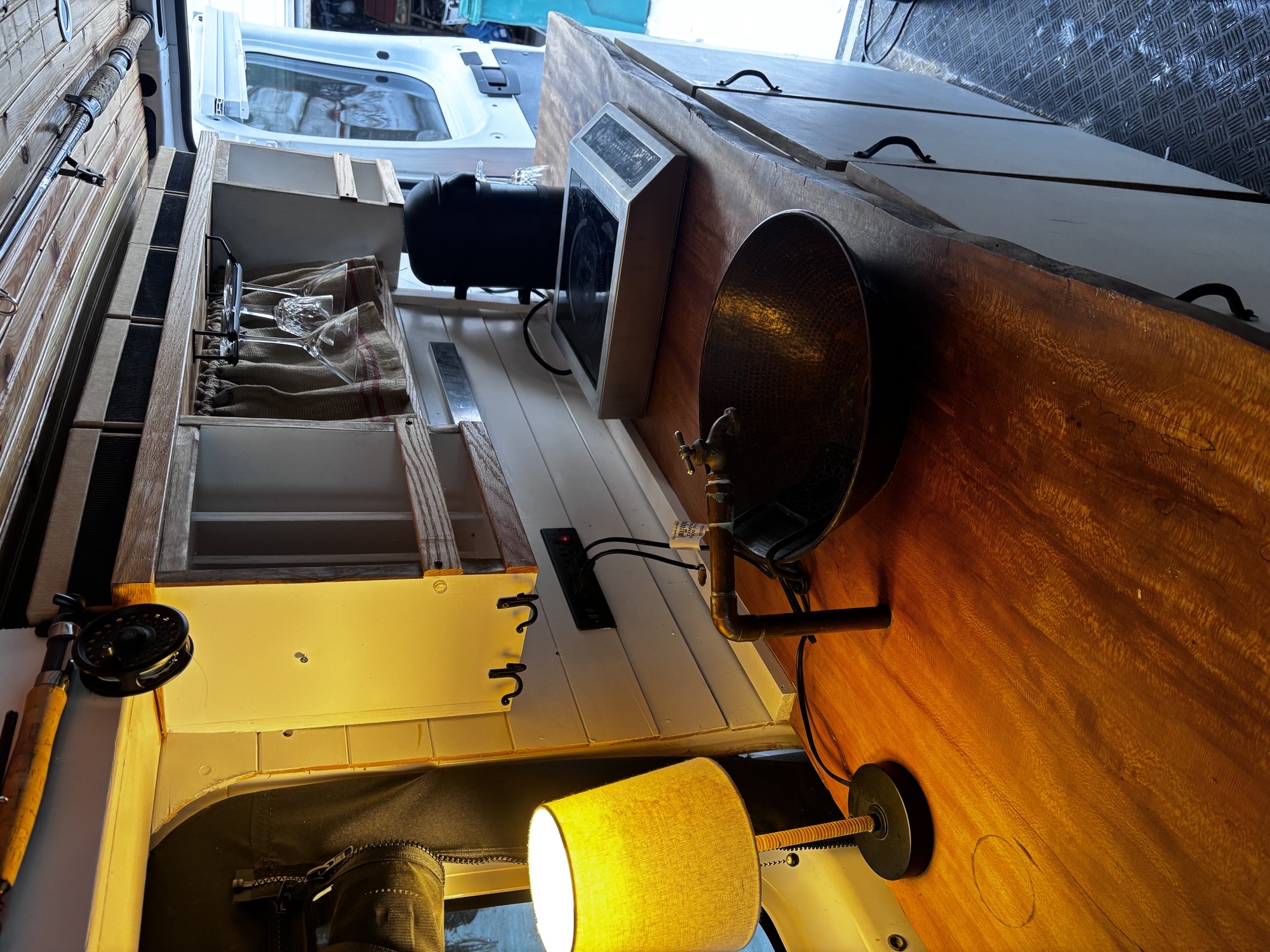 Customized for Travel! It"s ready to go! Renogy solar panels with Renogy charge controller. Solar charges 12V commercial AGM NAPA battery. Solar runs Truck fridge TF49, recessed ceiling lights and Maxxfan. Truck fridge runs on electricity when van plugged in. Fridge switches automatically from solar/battery to electricity. Two bilateral electrical ports. Multiple plug-in sockets and USB sockets. Induction burner to use when plugged in. Copper sink, 14"", water is pumped with Whale Babyfoot marine pump. Sycamore live edge counter top. Custom drawers and storage spaces organized with Pottery barn baskets. Tonge and groove paneling on 3M insulated ceiling and walls. Cushions 5"" foam covered with denim forms single bed. Awning style bilateral bunk windows. Custom magnetic blackout window covers. Top down, bottom up insulating blinds on rear door window besides the magnetic blackout outs. Ceiling Maxxfan with remote and adjustable speed and direction. Thetford porta-potti discreetly in a custom drawer. Bugwall zip and roll magnetic screen for sliding side door. Thule hideaway awning-attaches either to van or the ground. Passenger cab seat swivels 180 degrees. U-Haul hitch