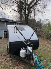 1 gallon freshwater tank, 13 gallon gray water tank, outside hot and cold shower, heater, air conditioner, 2 propane tanks.