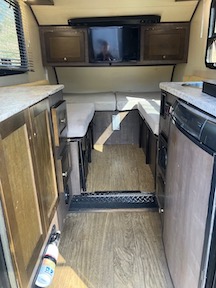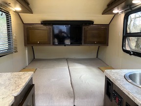 Small, entry-level camper. 13' long, easy to tow, and parks almost anywhere.