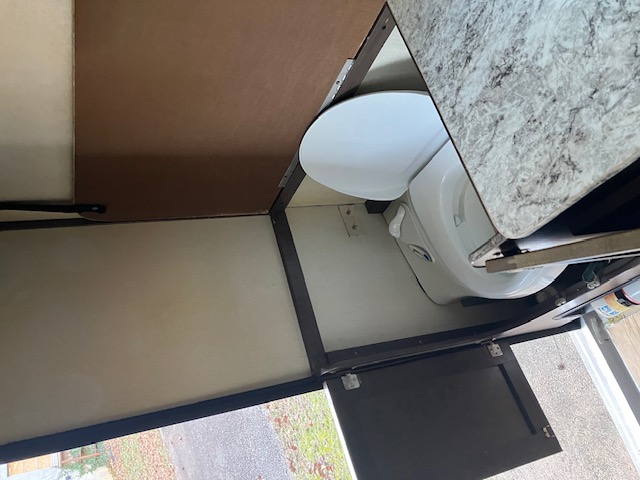 Thetford easy-to-use cassette toilet -under a working surface counter that lifts up easily-.