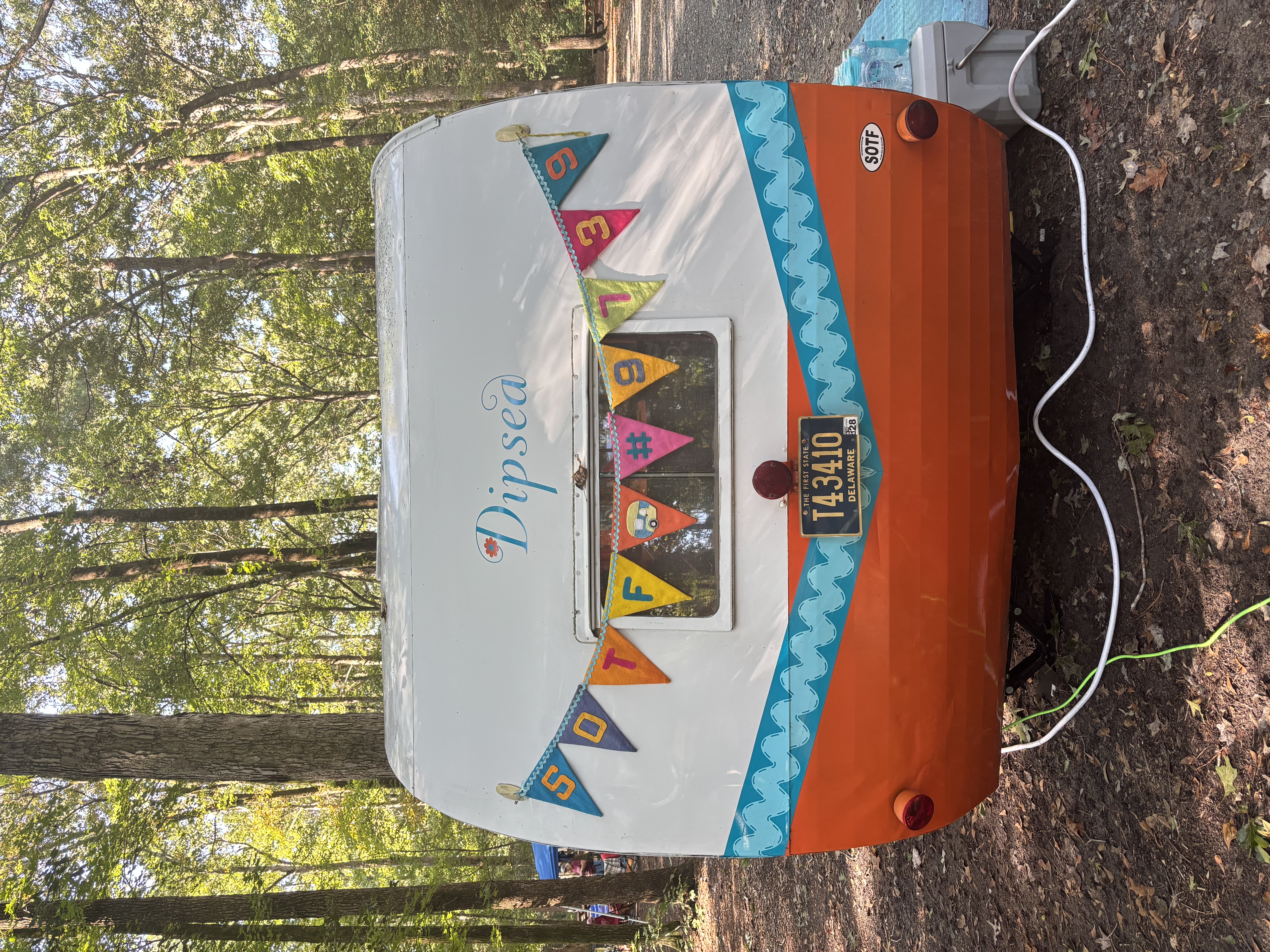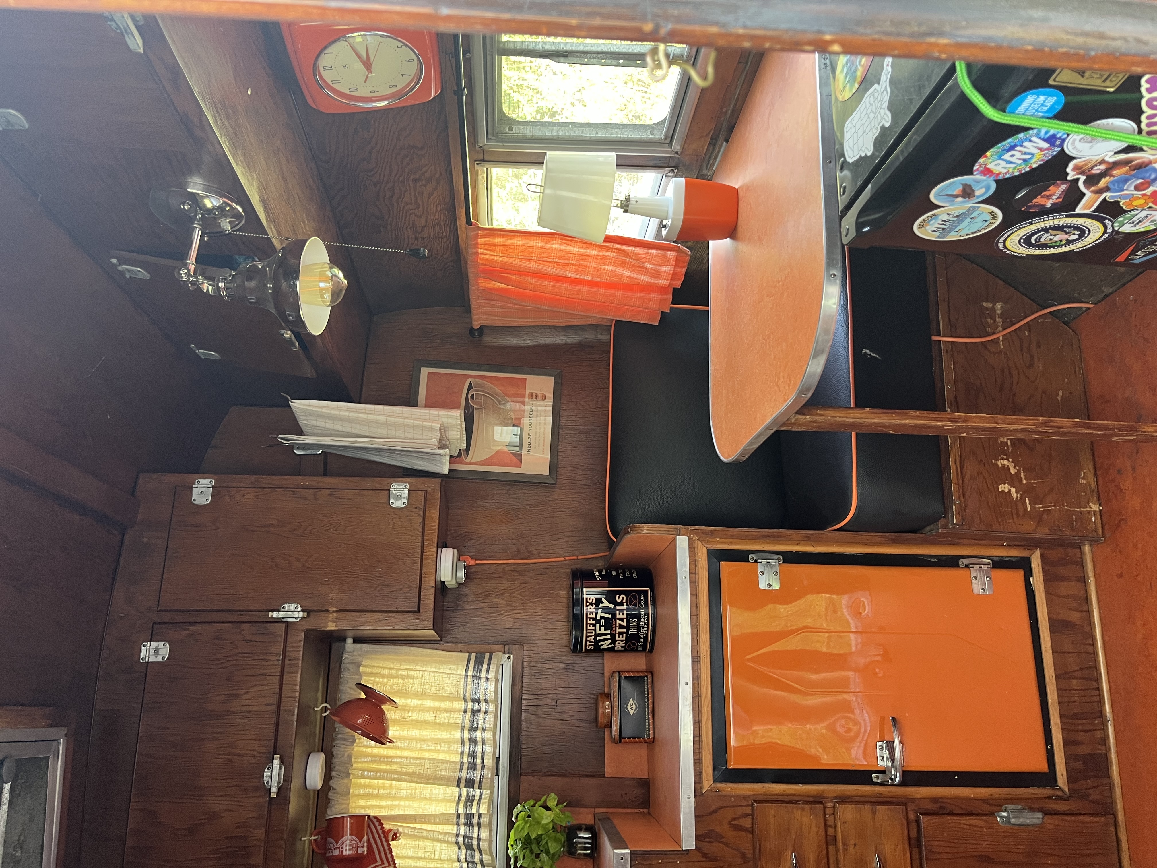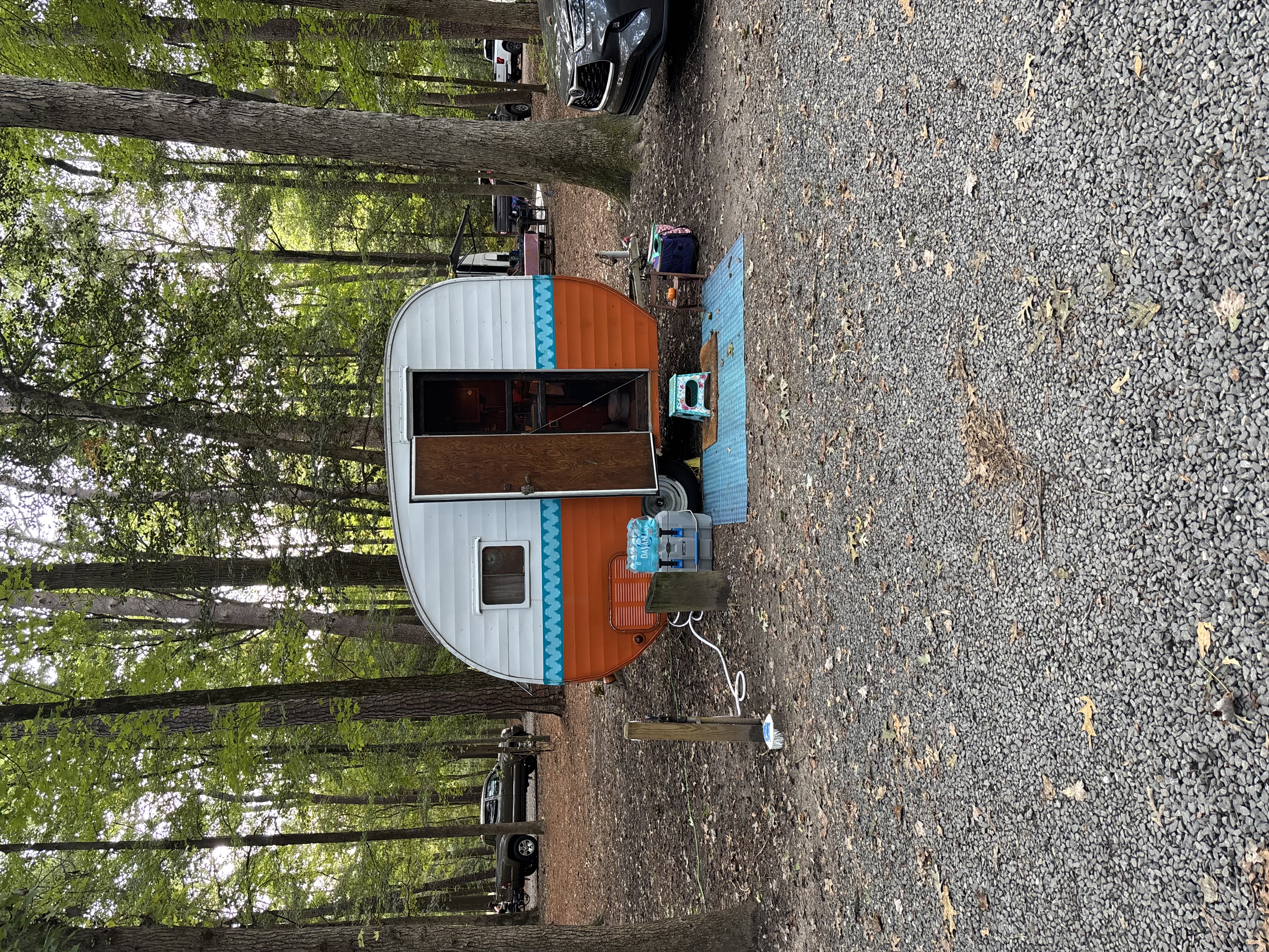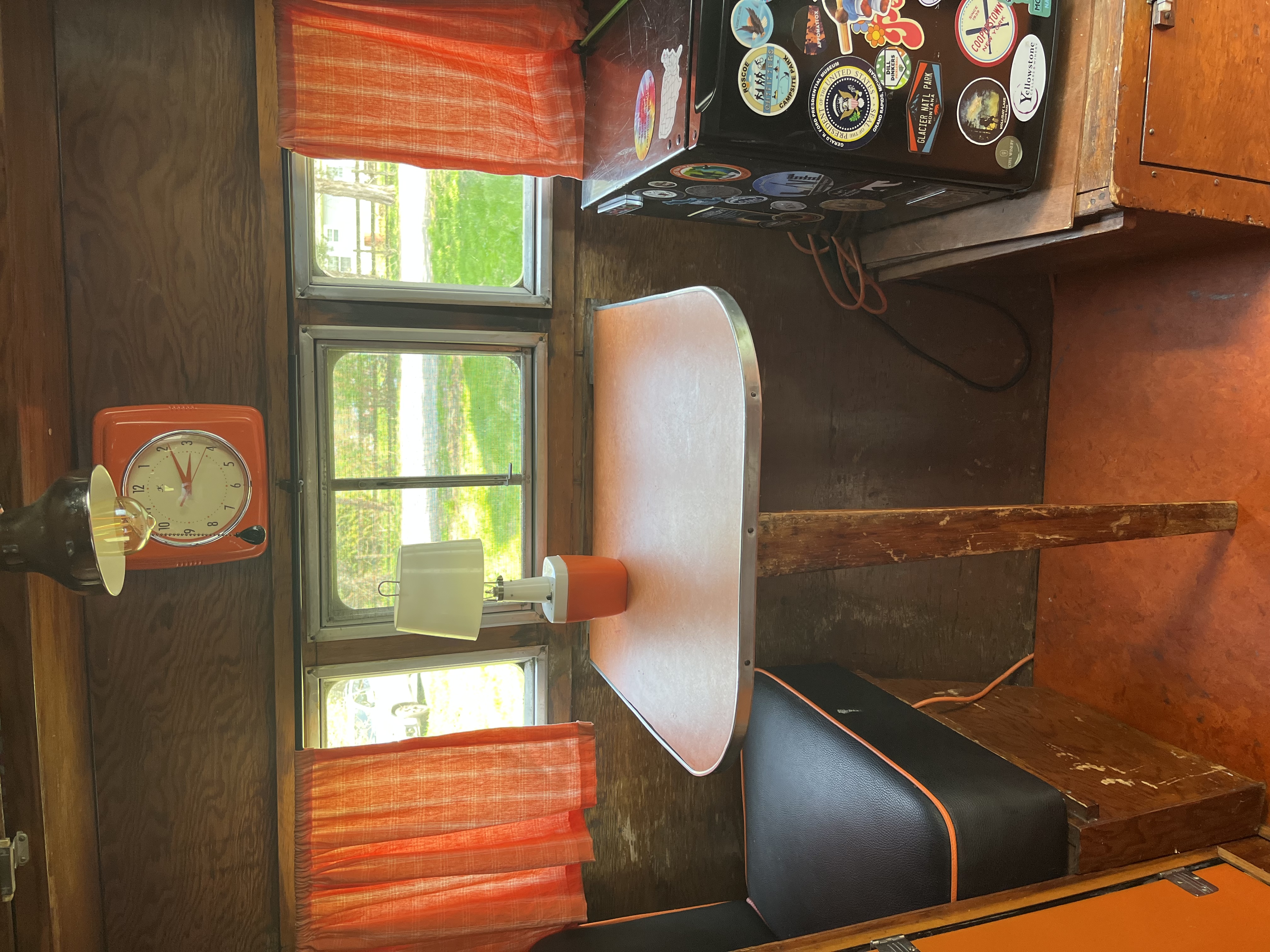 Very rare vintage 10 ft. -11ft with tongue- canned ham travel trailer. All ORIGINAL except the air conditioner. Sleeps one with a surprising amount of room inside. Lots of windows shed a lot of light inside. One bench seat has been swapped out for a little fridge but the bench seat is available if preferred. Outside decorative trim is vinyl and can be removed to make it your own! This little camper has been from Maine to Florida and Montana and back. Title in hand.