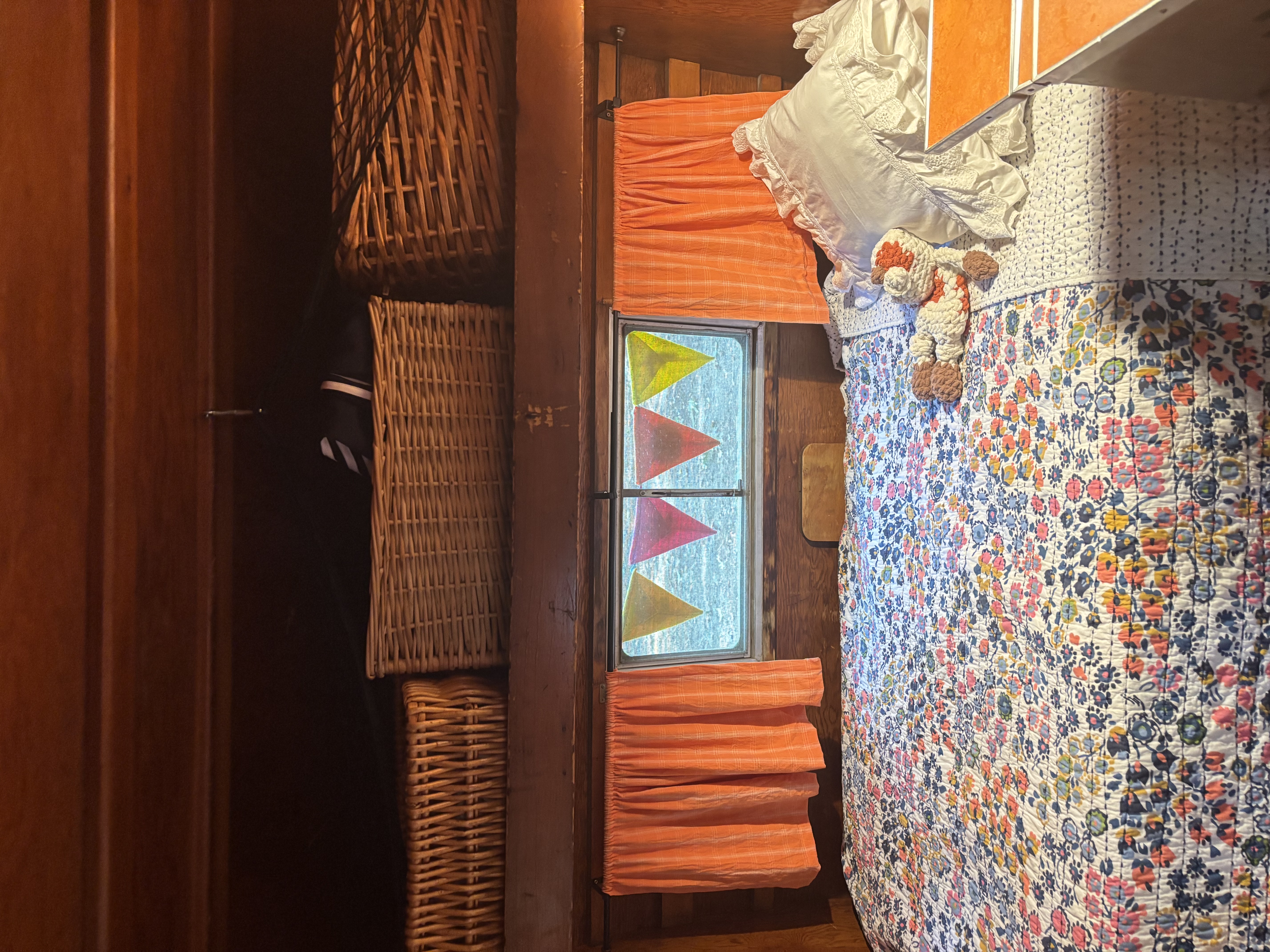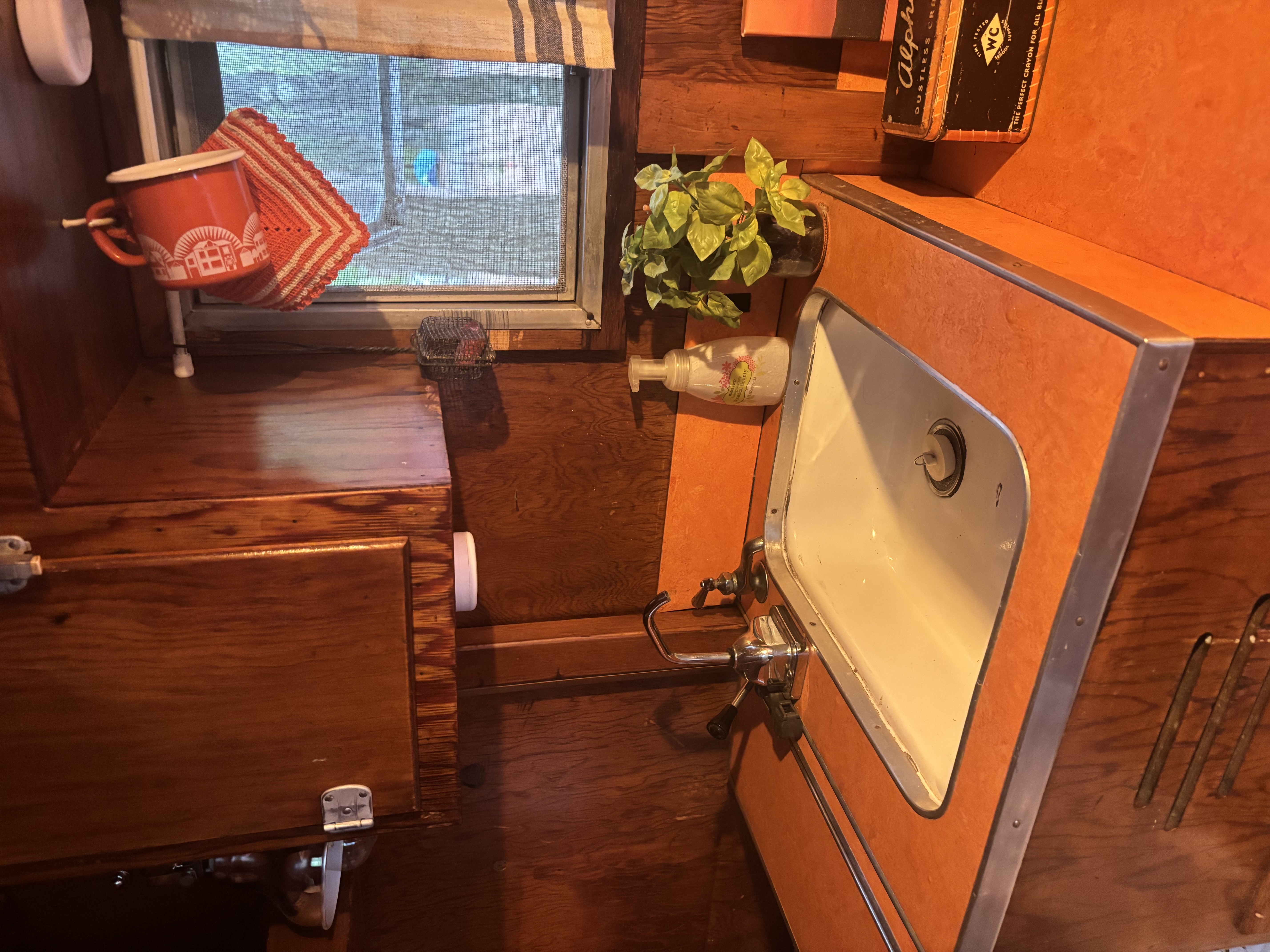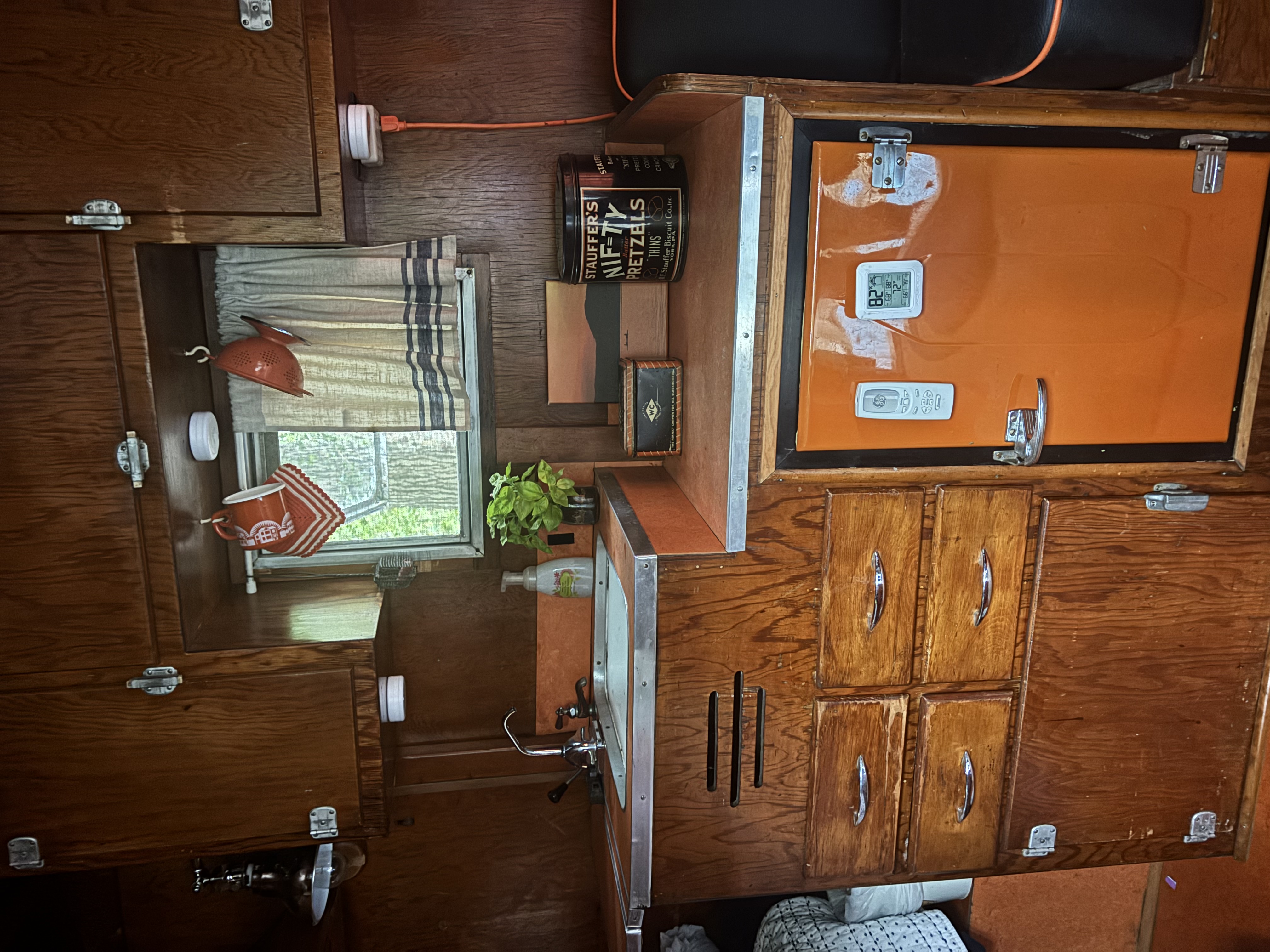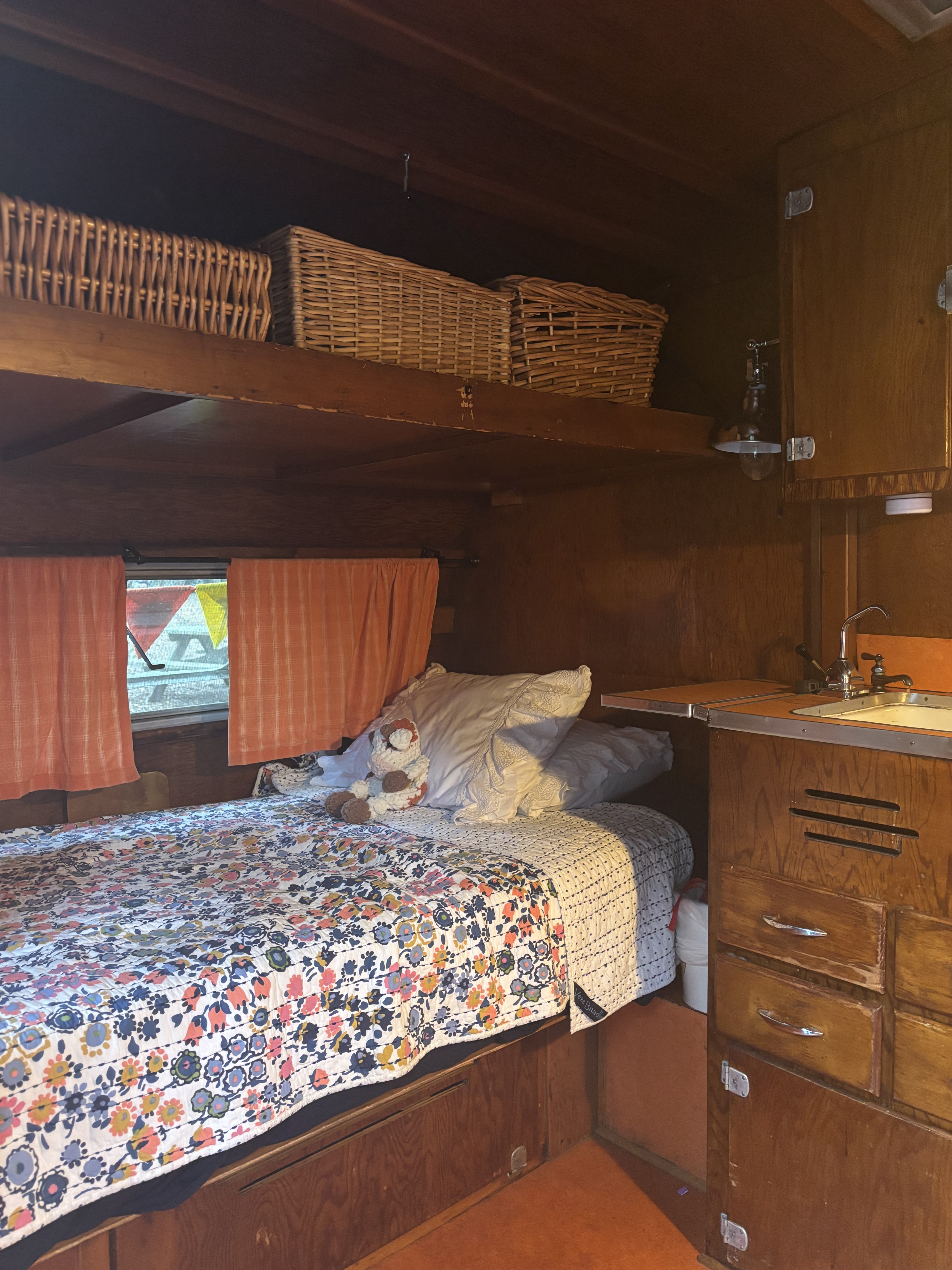 Very rare vintage 10 ft. -11ft with tongue- canned ham travel trailer. All ORIGINAL except the air conditioner. Sleeps one with a surprising amount of room inside. Lots of windows shed a lot of light inside. One bench seat has been swapped out for a little fridge but the bench seat is available if preferred. Outside decorative trim is vinyl and can be removed to make it your own! This little camper has been from Maine to Florida and Montana and back. Title in hand.