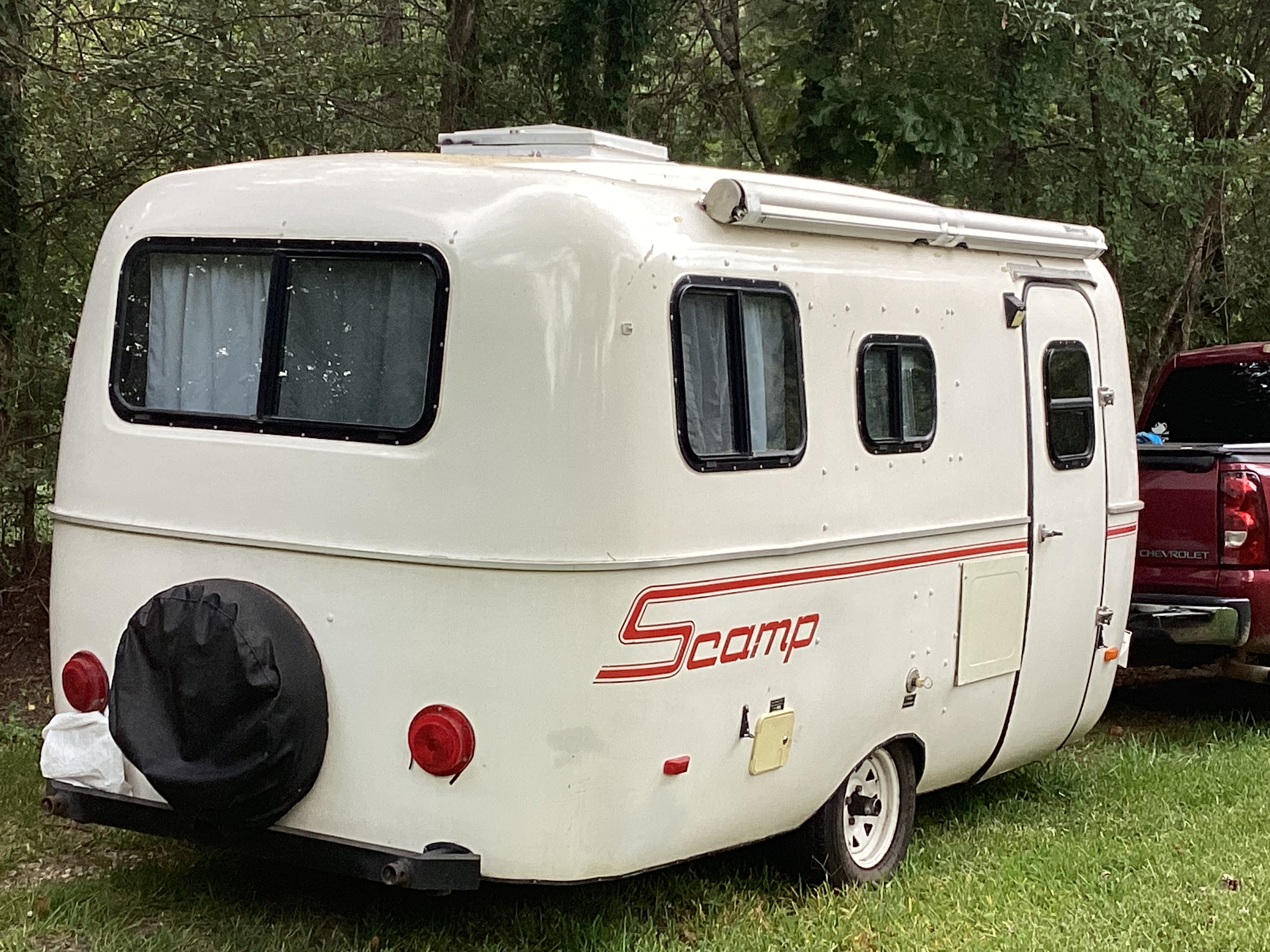 Scamp in good condition ready to continue its journey.  Bench in front can convert into twin beds. Air conditioner, stove, and wet bath.  Rear table area being used as nice soft bed, but can be redone into table area if desired. 13 inch tires. Ready to hit the road condition....Read More